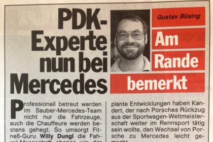 WSPC-Rennarzt, Team-Sauber-Mercedes, (Jochen Neerpasch, Peter Sauber, Max Welti, Beat Zehnder, FIA Gruppe C (Win 2x WM + Double-Win Le Mans 1989) + Masseur Willy Dungl, H. Hawelka)Piloten: Jochen Mass, J.-L. Schlesser, Mauro Baldi, Kenny Acheson, J.-P.Jabouille, Manuel Reuter, J.-C.Brancatelli, Alain Cudini, Stanley Dickens